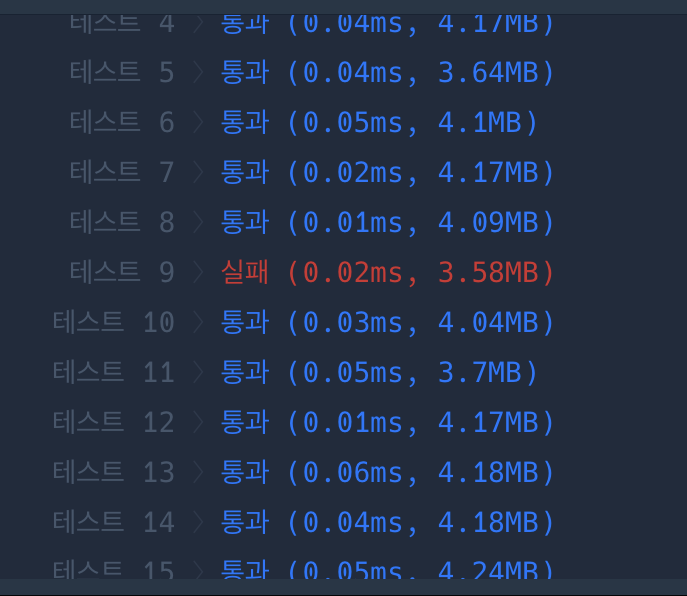 그러나 테스트 9에서 하나 실패가 뜬다 ㅠㅠ