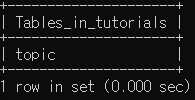 tutorials이라는 database안에 topic이라는 table 하나가 존재한다는 것을 확인 가능