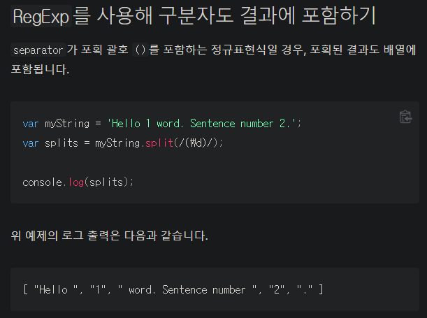 split() 관련 MDN 문서를 찾아보다 발견한 것.